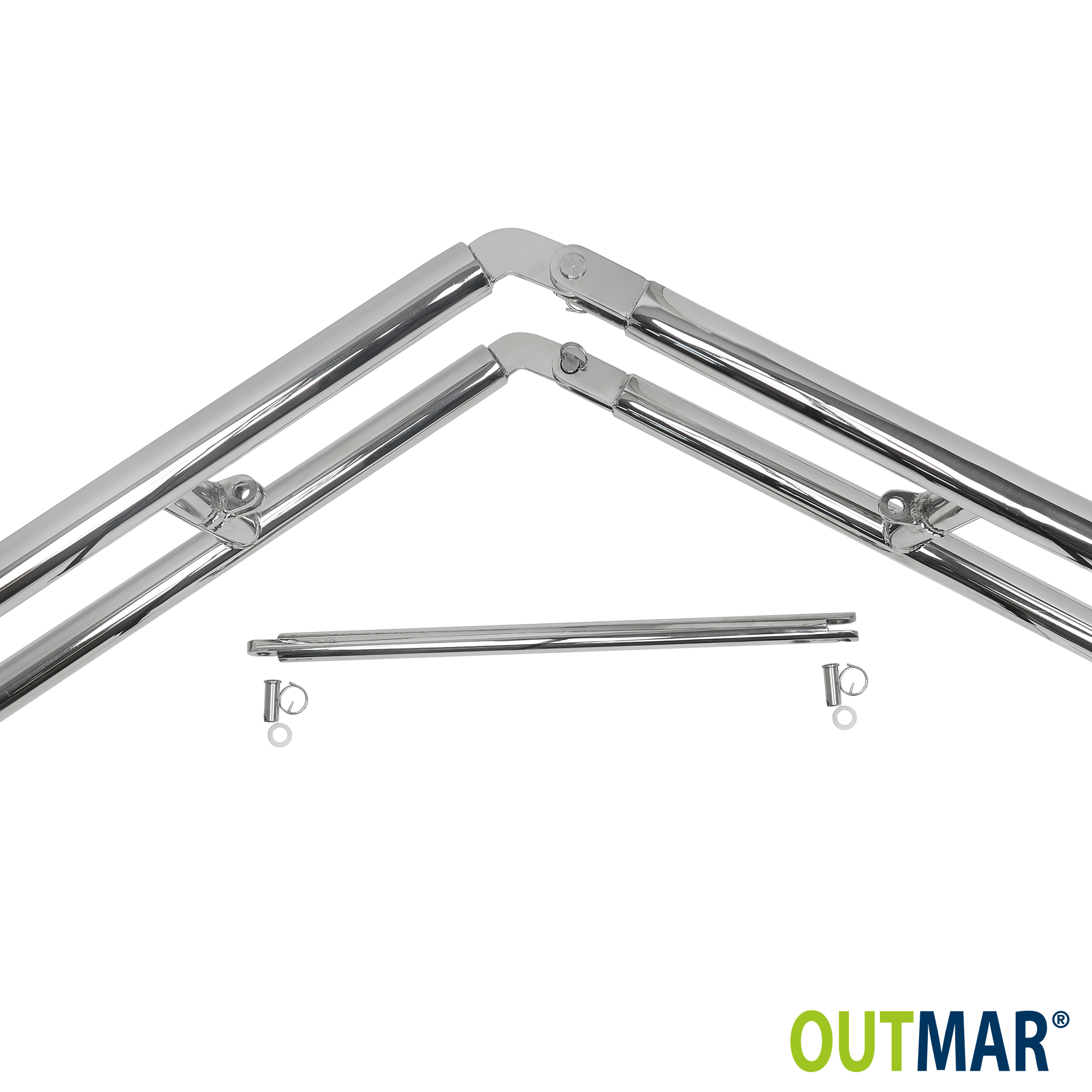 2x stainless steel davit arms, with a tube dimension of 32 mm and a maximum load capacity of 100 kg per arm