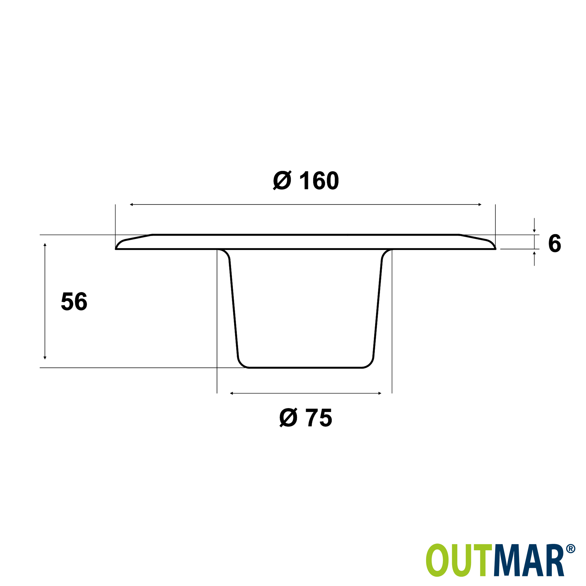 In this version, the adapter (160 mm diameter) is screwed directly onto the floor and protrudes 56 mm above the surface. It is particularly suitable for quick and easy installation, as no milling or cut-out work is required.
