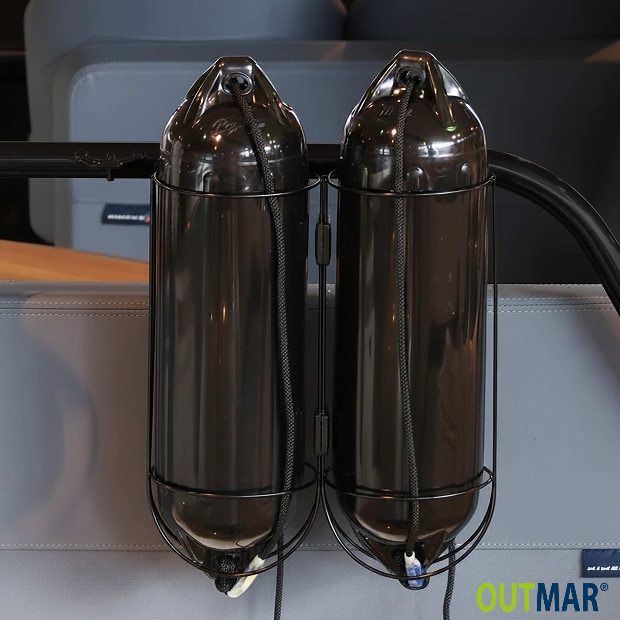 Die Fenderkörbe bestehen aus robustem, 4 mm starkem, schwarz lackiertem Edelstahlrohr. Adapter und Verbinder sind aus schwarzem, UV- und seewasserbeständigem Nylon gefertigt. Die Montage erfolgt einfach mit einem Schraubendreher.